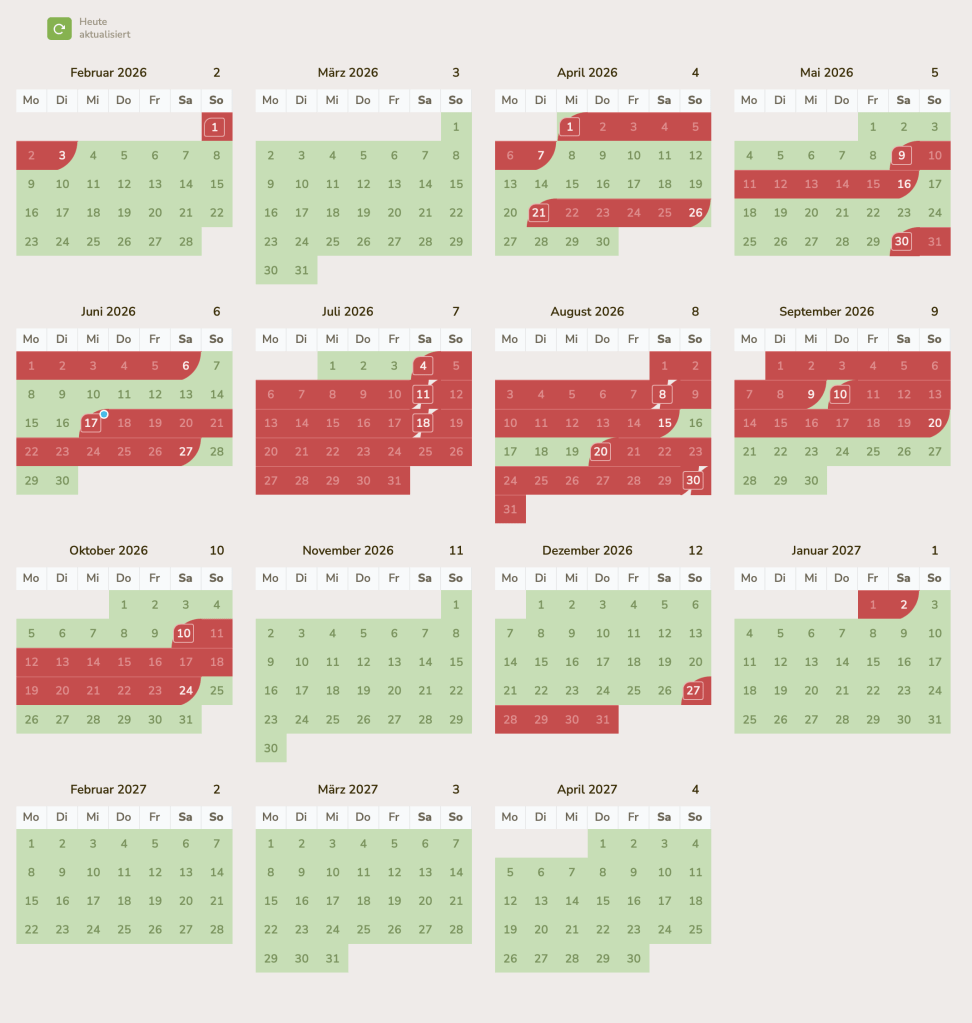 Anzahlung 15% des Mietpreises, Restzahlung bis 10 tage vor Anreise