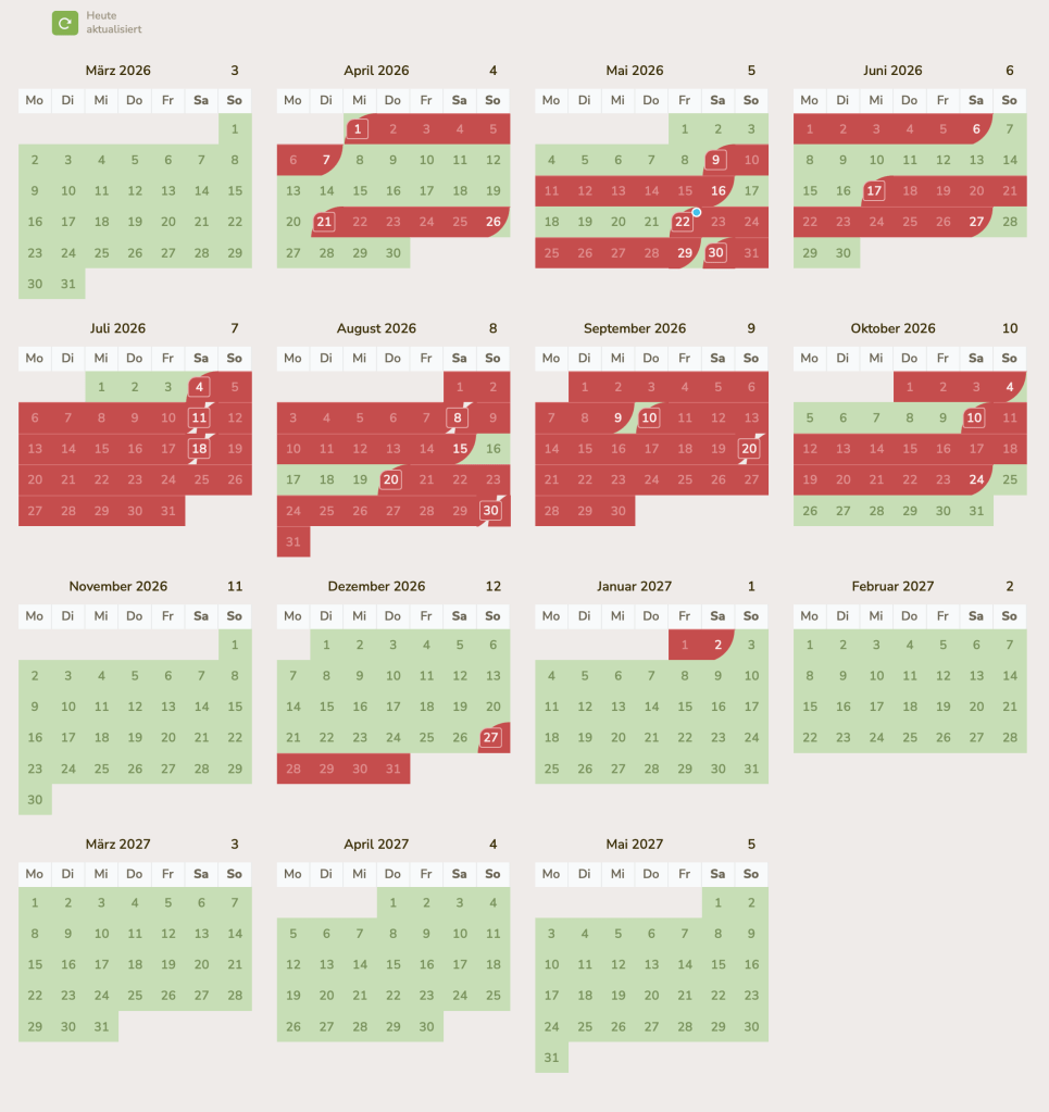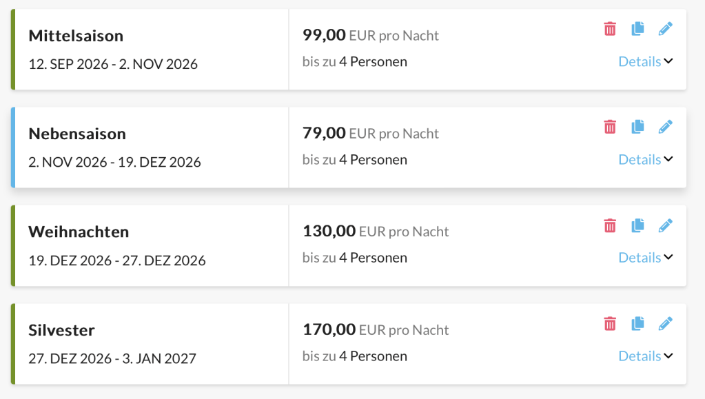 Anzahlung 15% des Mietpreises, Restzahlung bis 10 tage vor Anreise